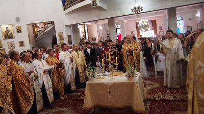 Az esküvői szertartás - tekintettel, hogy a templom első papjának a lánya ment férjhez - igazán nem szokványos volt de nagyon impozáns és számomra érdekes. Egy esküvőt egy pap vezet le, itt összesen huszonnyolc pap vett részt a szertartásban. A ceremónia fő részeit mind más pap végezte.